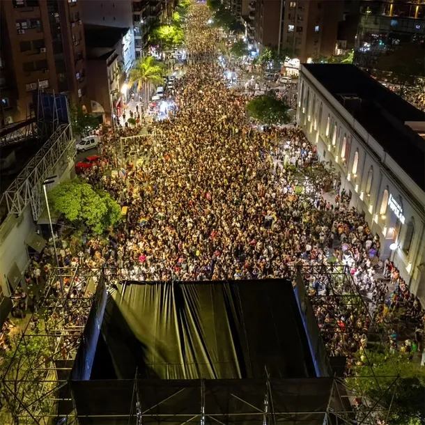 La foto fue tomada con un drone, desde atrás del escenario. Se puede ver entre la multitud una bandera con los colores del orgullo LGBTQIA+.
