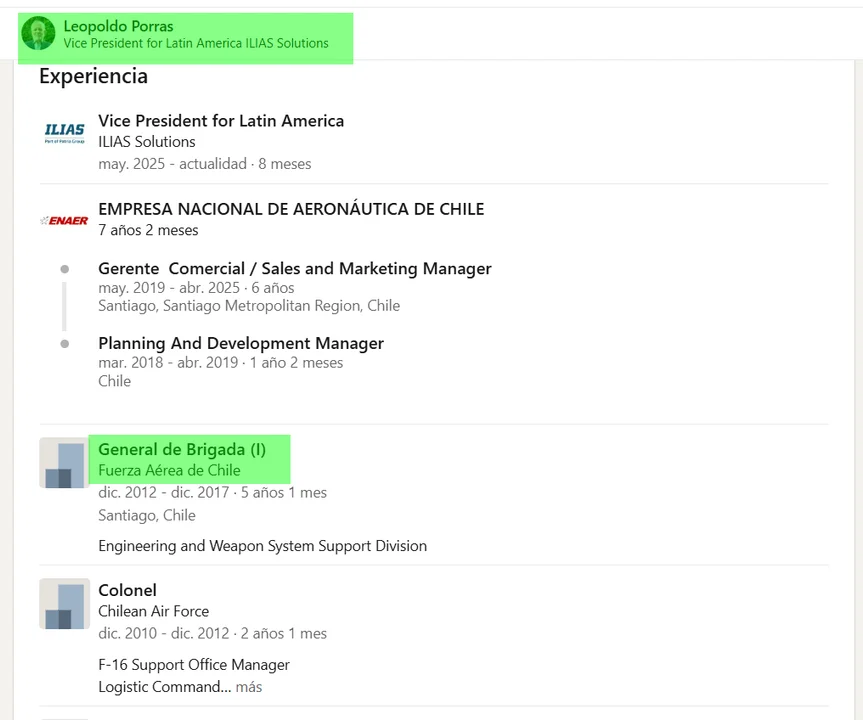 Los dos son directivos de Ilias, el sistema logístico del F16 que se promociona desde páginas afines a la Fuerza: