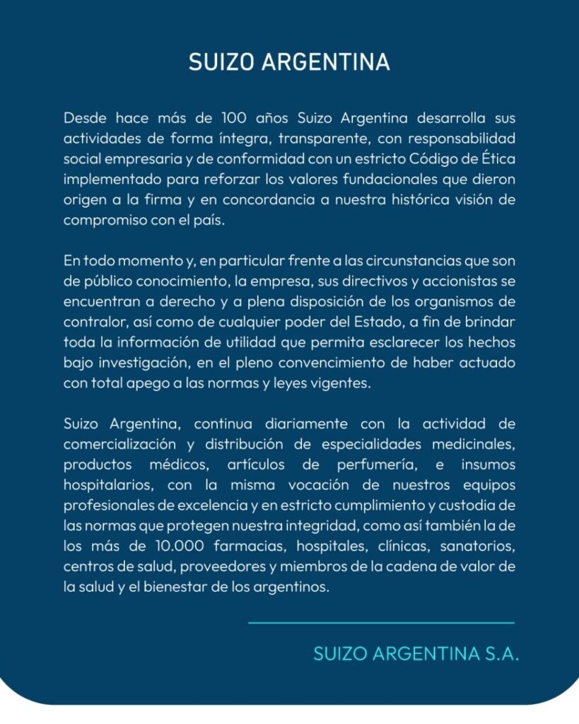 Según expuso un informe dado a conocer anoche en A24, la droguería Suizo Argentina -que se encuentra involucrada en la causa por presuntas coimas, investigada por sospecha de sobornos con el Estado- le facturó un total de 4.900.350.861 de pesos a la Obra Social del Estado Fueguino (OSEF) en los últimos nueve años.