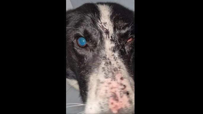Según la historia que se viralizó en las redes, el protagonista de la historia es «Orejas», un perro que recibió un balazo en la cabeza. La bala entró arriba de su ojo, se rompió adentro y se dispersó por toda su cabeza.