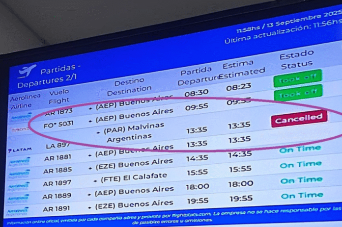El vuelo partió ayer domingo a las 13:18 de Ushuaia y arribó a Monte Agradable a las 14:46 no sin antes desatar un episodio de alta tensión diplomática y simbólica, ya que la aerolínea LATAM eliminó el nombre oficial «Malvinas Argentinas» del aeropuerto de Ushuaia en sus pasajes y plataforma web.