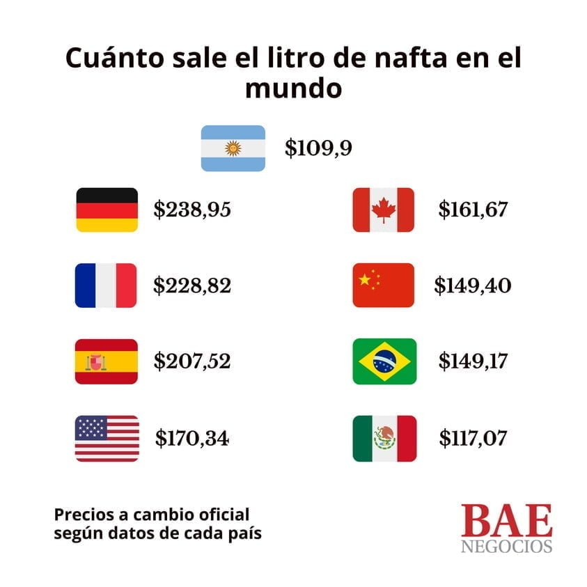 Debido al complicado contexto internacional, muchos países de Europa y América ya ven reflejados en las estaciones de servicio los reiterados incrementos en el precio del petróleo. Estados Unidos, por ejemplo, alcanzó niveles jamás vistos en sus registros, aunque logró recortar algunas de esas subas. Así, el precio promedio del galón de nafta, que es de 3,71 litros, es de 4,33 dólares (472,81 pesos a cambio oficial), aunque en California llegó a valer USD 5,74 (626,77 pesos).