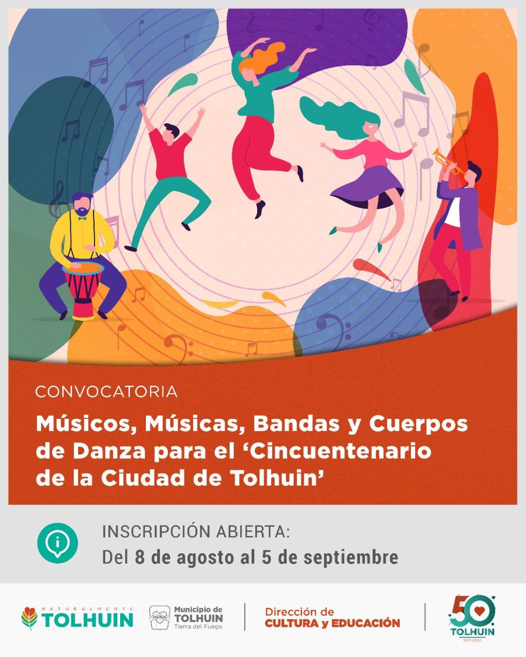 Aquellos artistas interesados se podrán inscribir hasta el 5 de septiembre completando el formulario incluido en la página oficial del Municipio de Tolhuin, y también en las redes de la Casa de la Cultura.
