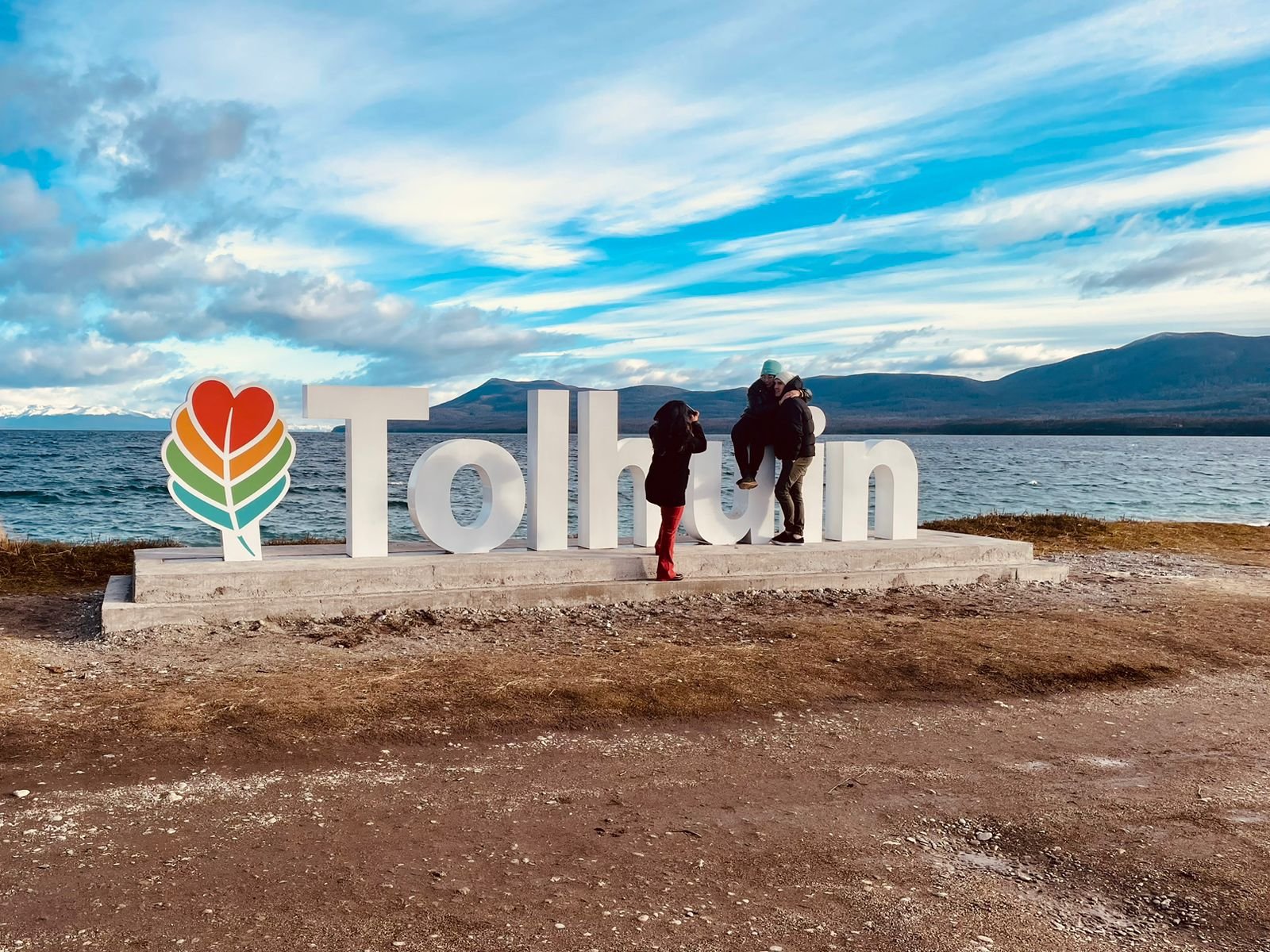 El conjunto escultórico consiste en tres esculturas, dos de ellas hacen referencia a espíritus Selknam característicos del ritual Hain y uno a la Provincia de Tierra del Fuego, que representa la falla de Magallanes-Fagnano. Además, en el lugar se colocaron las ya tradicionales letras corpóreas formando la palabra “Tolhuin”.