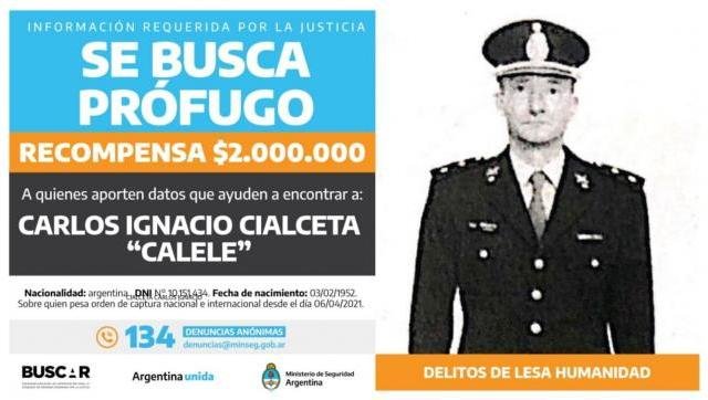 Ante ello, el 9 de abril el fiscal Amad pidió la captura del ex teniente coronel y la jueza Giménez ordenó la medida, con alcance internacional. Cialcieta, según surge del requerimiento fiscal, fue procesado por los delitos de privación ilegítima de la libertad por violencia y amenazas, tratándose de un funcionario público en abuso de sus funciones, en concurso real con el delito de homicidio doblemente agravado por el número de personas y alevosía.
