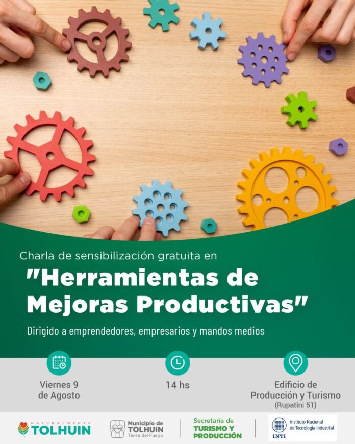 El Municipio de Tolhuin, a través de la Secretaría de Turismo y Producción y en colaboración con el Instituto Nacional de Tecnología Industrial (INTI) de Tierra del Fuego, anunció la realización de una charla de sensibilización titulada "Herramientas de Mejoras Productivas". Esta actividad está diseñada para emprendedores, empresarios y mandos medios que buscan optimizar sus procesos productivos mediante el uso de tecnologías de gestión.