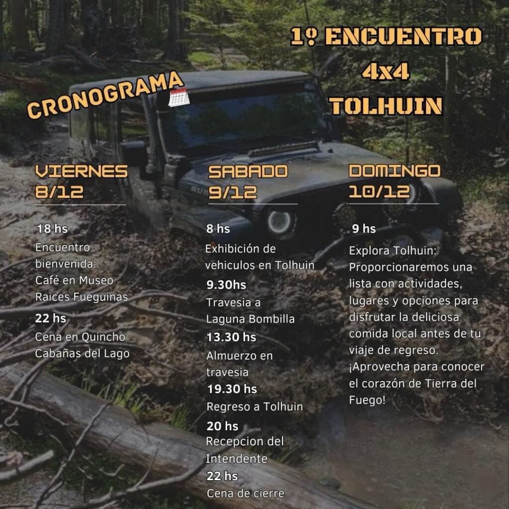 Del 8 al 10 de diciembre de 2023, Extremo Sur 4X4 en colaboración con el Municipio de Tolhuin, llevarán a cabo la primera edición internacional de la travesía 4x4 en Tierra del Fuego. Este evento promete un encuentro para los amantes de la aventura y la naturaleza.