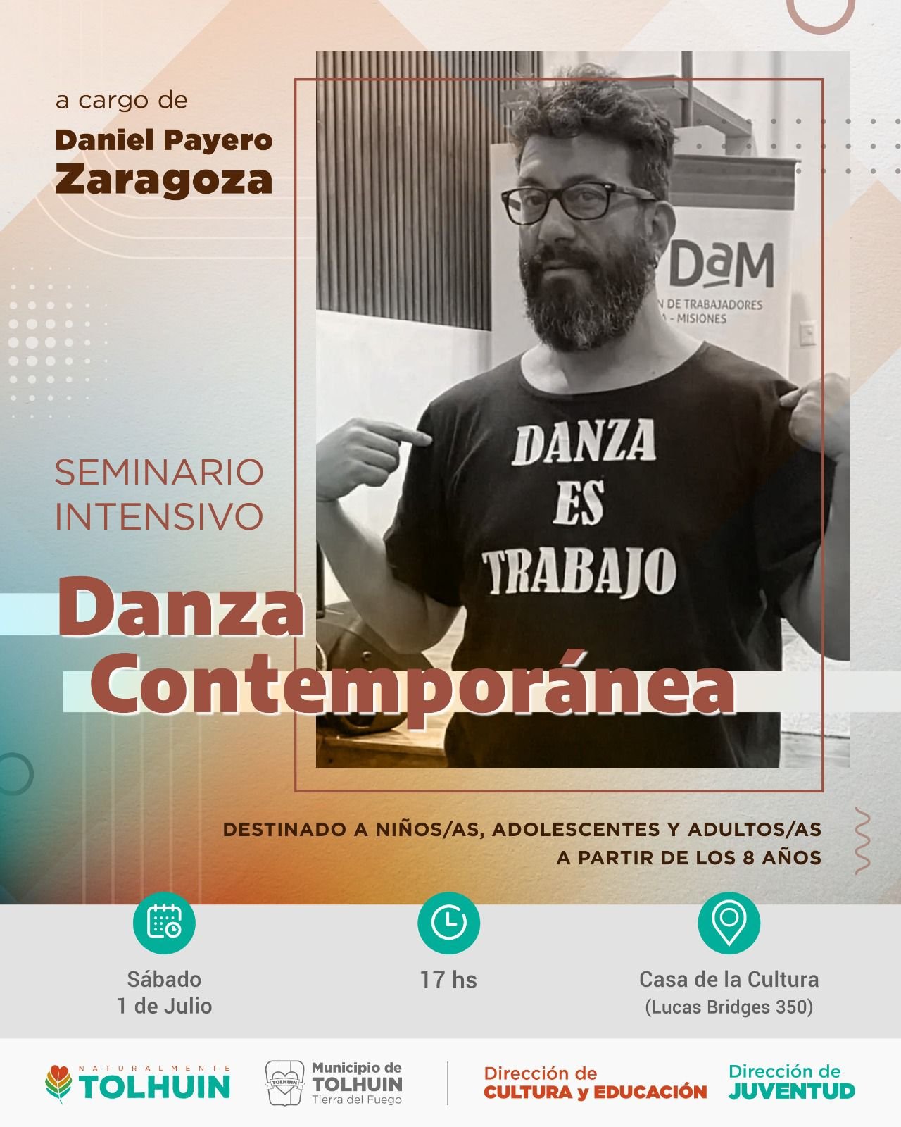 La actividad es organizada por las Direcciones de Juventud y de Cultura y Educación del Municipio de Tolhuin, que invitan a la comunidad a participar de esta propuesta llevada adelante por el reconocido coreógrafo y bailarín de Santa Fe, Daniel Payero Zaragoza.