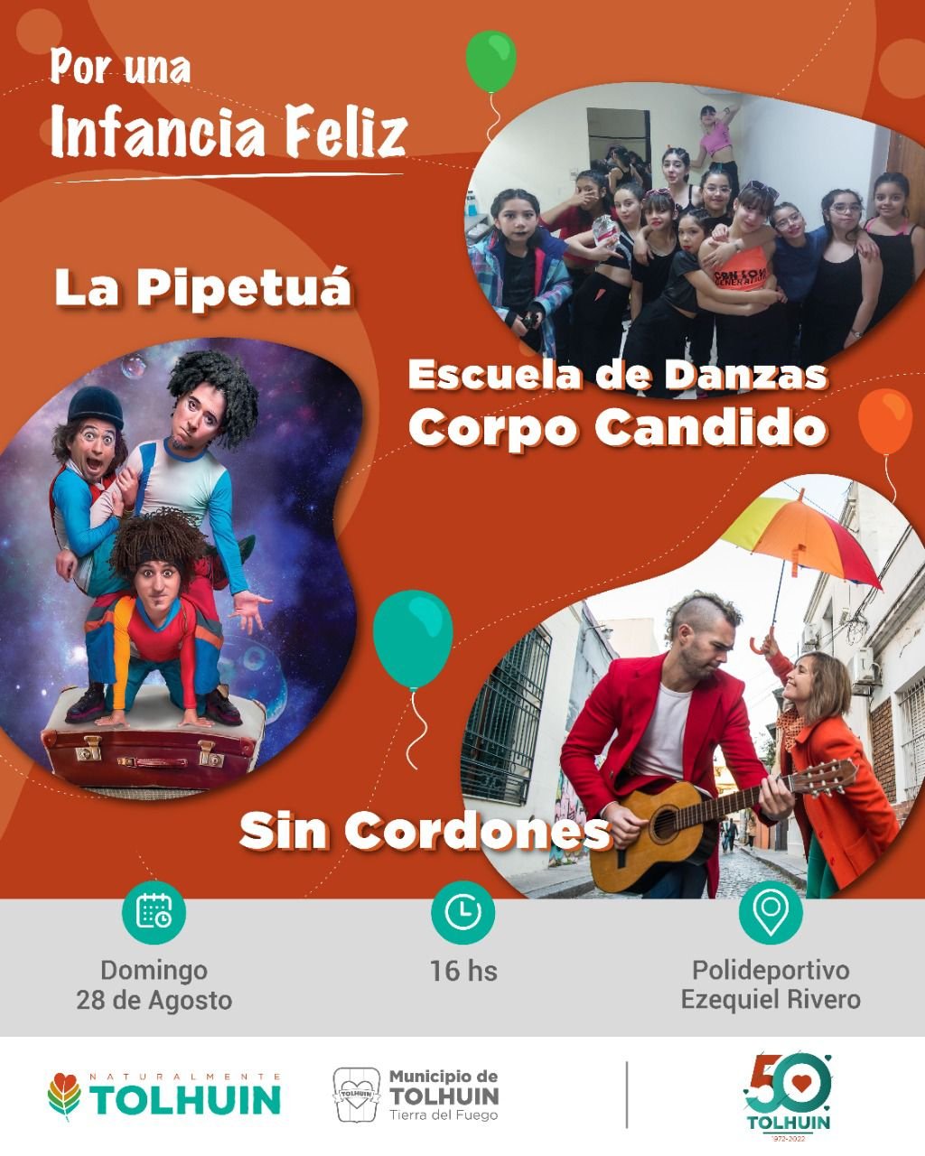 Tendrá lugar en el Polideportivo Ezequiel Rivero, a partir de las 16:00 hs, donde se podrá disfrutar de un espectáculo de la Escuela de Danzas de Tolhuin “Corpo Cándido”, el dúo Sin Cordones y el gran show de “La Pipetuá”.