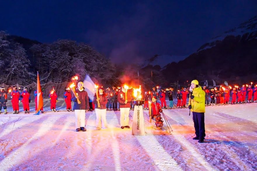 En este marco, descendieron los deportistas olímpicos juveniles de Tierra del Fuego, Azul Chávez, Valentín Moreno y Dante Vera portando la bandera argentina, y se sumó Nicolás Lima, primer atleta fueguino clasificado para los Juegos Paralímpicos Beijín 2022, para encender el pebetero augurando una buena temporada invernal y dando la bienvenida a todos los que quieran visitar Tierra del Fuego y hacerse Fan de la Nieve del Fin del Mundo.