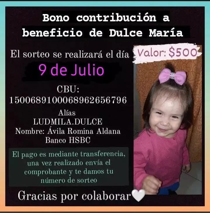 Respecto a la ayuda, más allá que desde el trabajo de la mamá de Dulce están colaborando, seguramente lo que viene requerirá un esfuerzo económico para la familia de Ushuaia por lo que están organizando un bono contribución para reunir fondos que puedan ayudar a transitar este difícil momento.