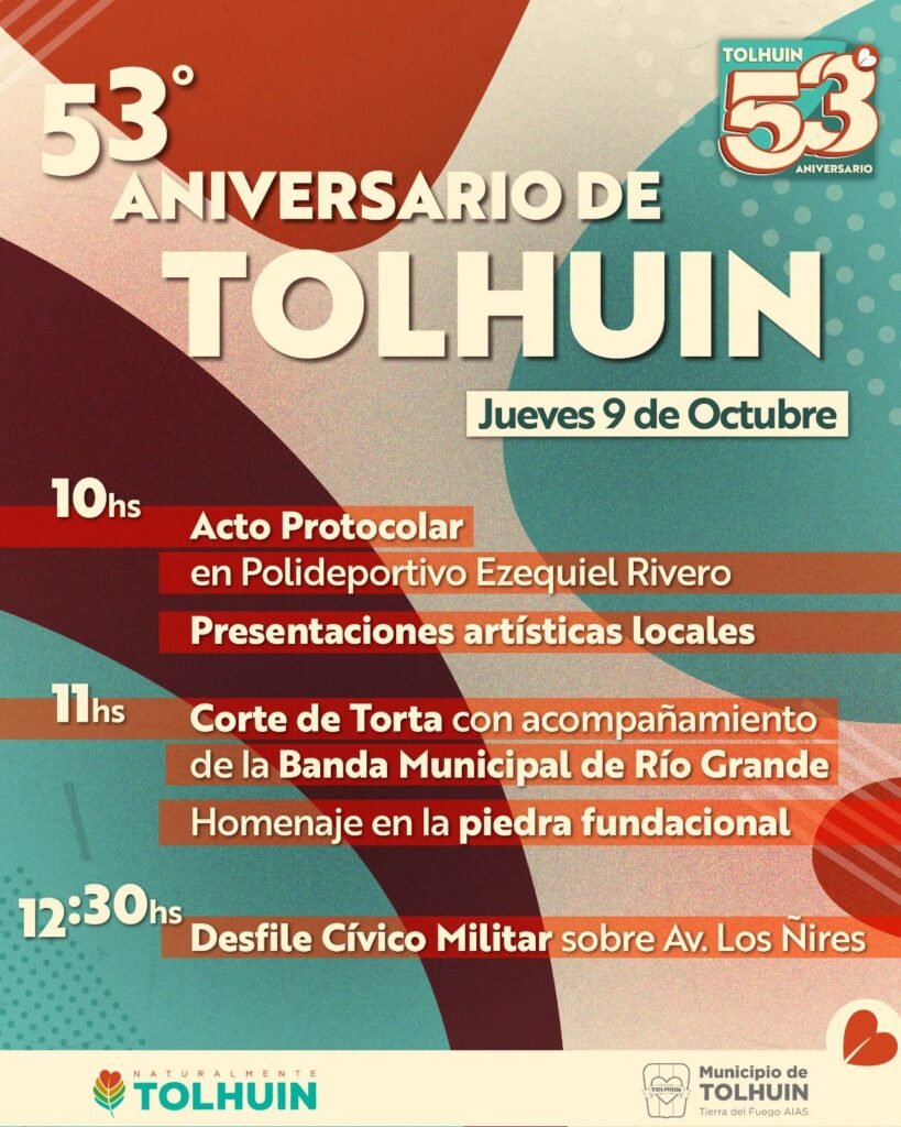 Desde el Municipio destacaron que la fecha representa “una oportunidad para celebrar en comunidad la historia de Tolhuin, honrar a sus pioneros y proyectar juntos el futuro de una ciudad que sigue creciendo con esfuerzo y arraigo fueguino”.