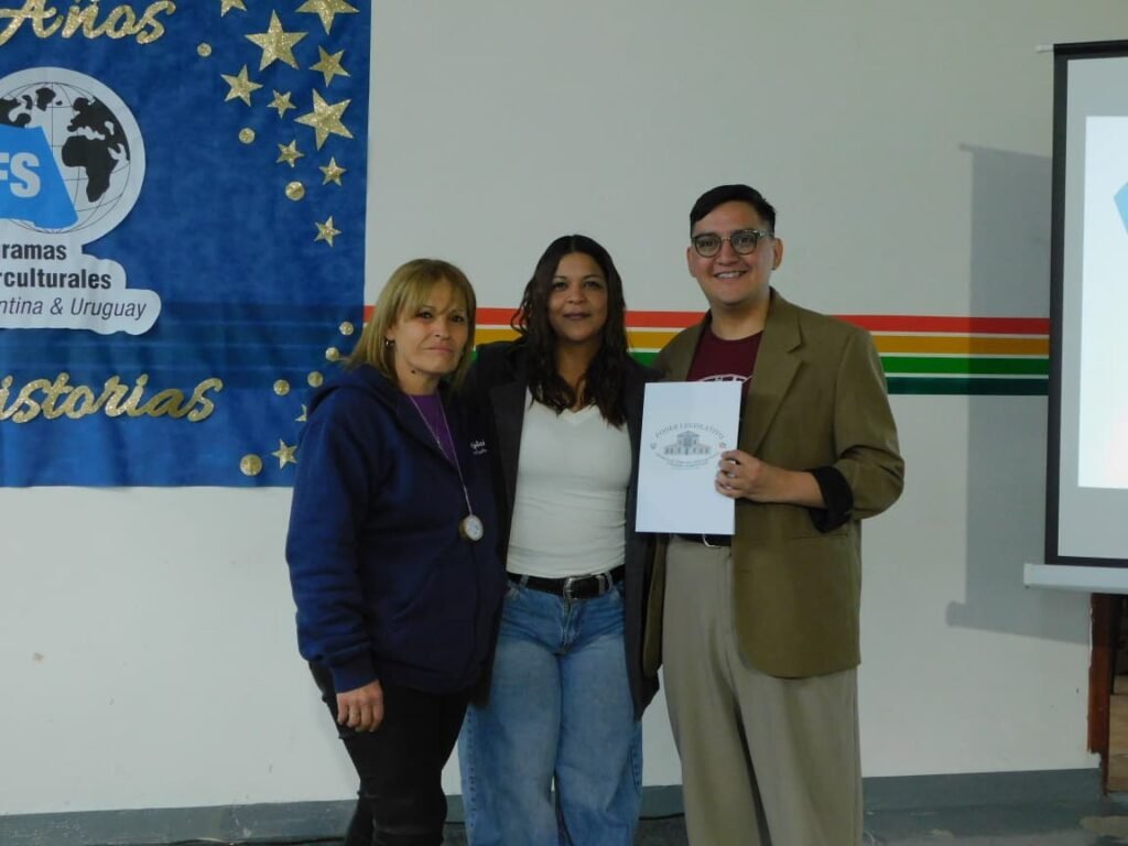 La Legisladora Provincial por Tolhuin, Gisela Dos Santos, acompañó la actividad junto a la representación institucional de AFS en la provincia, integrada por David Espinosa, Presidente de AFS Ushuaia, y Susana Sosa, Coordinadora de Relaciones Institucionales, reconociendo el trabajo que la organización desarrolla desde hace casi dos décadas en Tierra del Fuego.