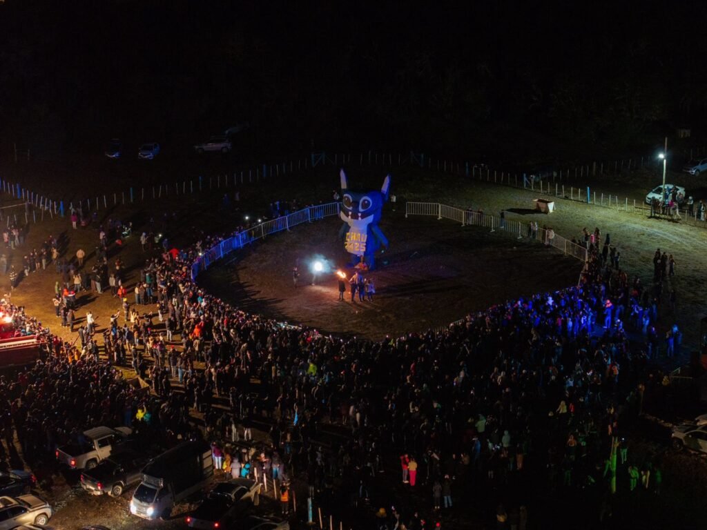 En esta edición, el protagonista fue Stitch, personaje elegido por votación popular de vecinos y vecinas, reafirmando el espíritu participativo que caracteriza a esta celebración. El muñeco fue realizado por la Coordinación de Servicios Públicos del Municipio, y quedó emplazado en el predio durante el mediodía previo al evento, como antesala de una noche muy esperada.