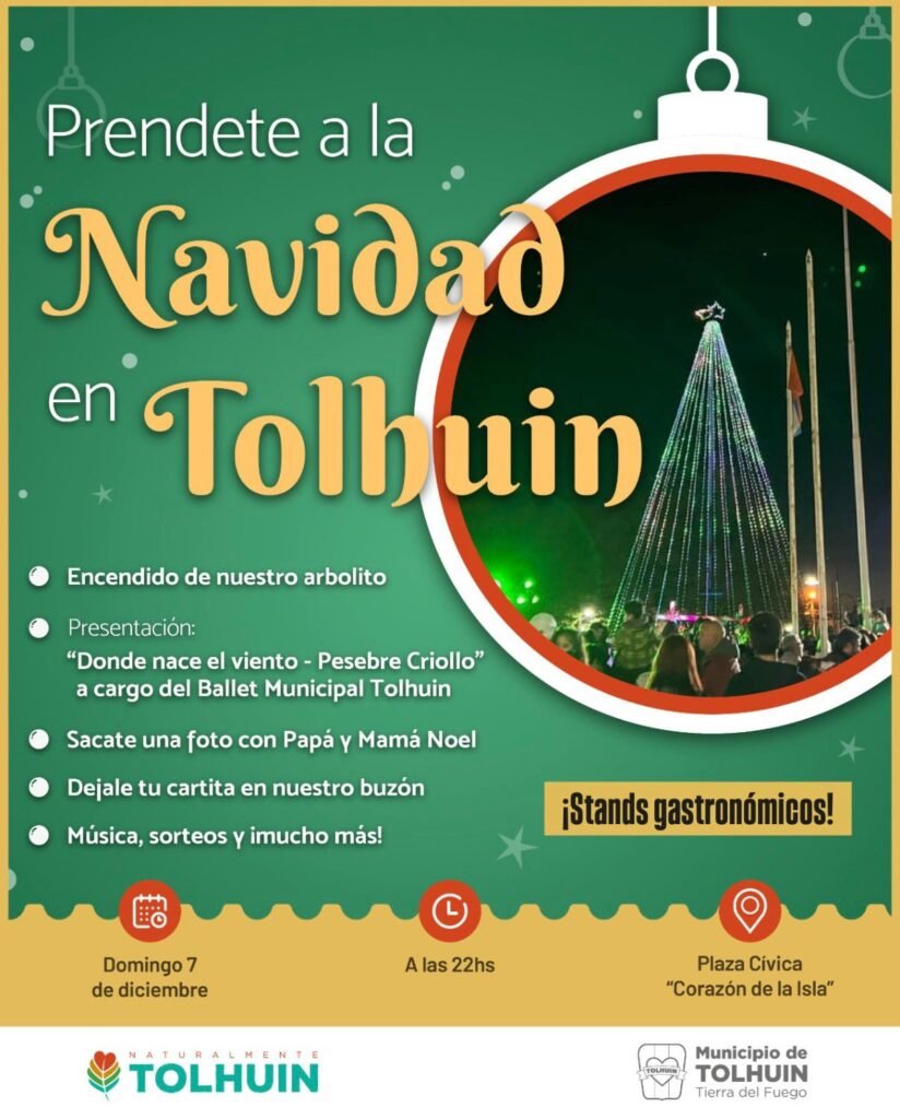 El Municipio de Tolhuin anunció la realización del tradicional encendido del arbolito de Navidad. El evento tendrá lugar este domingo 7, a partir de las 22 horas, en la Plaza Cívica “Corazón de la Isla”.