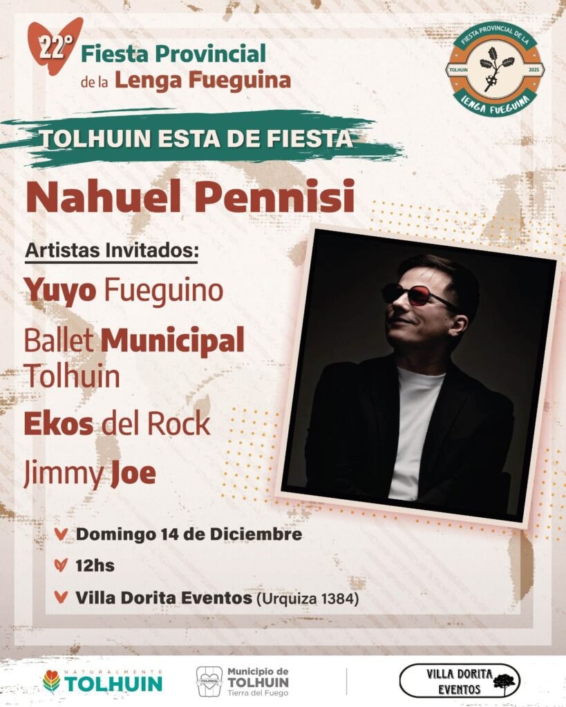 El broche de oro culmina con otro encuentro artístico de modalidad privada bajo el nombre “Tolhuin está de fiesta”, que tendrá lugar en Villa Dorita Eventos, en Urquiza 1384. La jornada contará con la presentación de Nahuel Pennisi y la participación de Yuyo Fueguino, el Ballet Municipal Tolhuin, Ekos del Rock y Jimmy Joe.