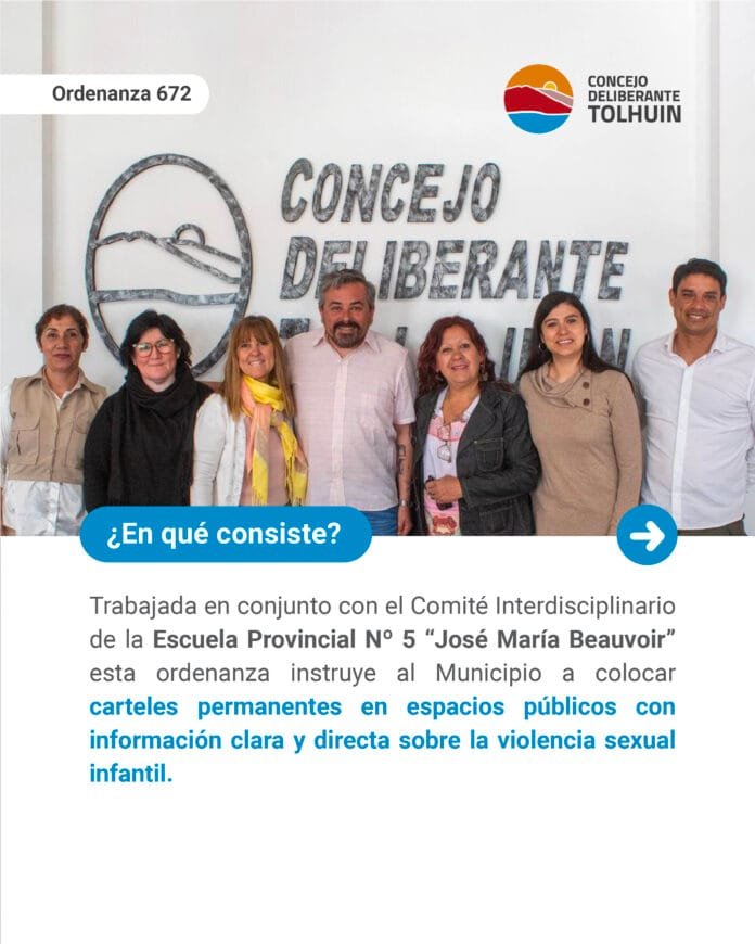 La ordenanza fue promovida y trabajada en conjunto con el Comité Interdisciplinario de la Escuela Provincial N.º 5 “José María Beauvoir”, integrado por Claudia Castro (directora de la institución), María Gabriela Martinicorena (licenciada en Psicología) y Danilo Montenegro (asistente educacional), quienes impulsaron esta propuesta desde una mirada comprometida con el cuidado de las infancias.
