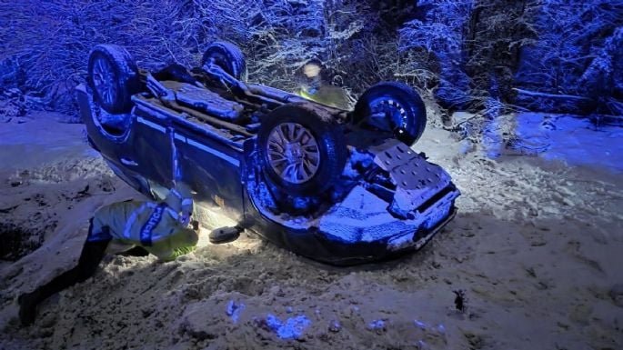 El primero de los accidentes se produjo en los primeros minutos de este lunes 8 de septiembre en calle Martial, altura del refugio Cauquén. Allí, se produjo el vuelco de una Toyota SW4 gris, perteneciente a una empresa de turismo.