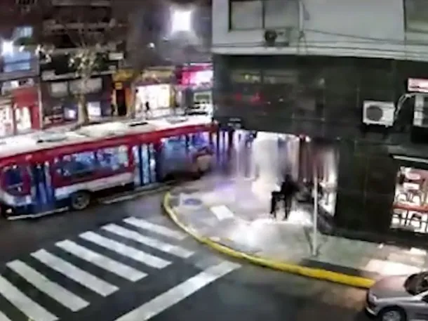 El hecho quedó registrado por las cámaras de seguridad que muestran cuando un peatón se encontraba a la espera de cruzar la avenida Santa Fe, en la intersección con la calle Ecuador, cuando fue sorprendido por el colectivo.