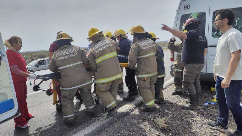 Las imágenes que circularon desde el lugar muestran graves daños materiales en los rodados, especialmente en el micro, que terminó volcado a un costado del camino.