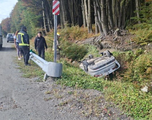 Un siniestro vial con vuelco se registró en la Ruta Nacional N° 3, a la altura del kilómetro 3039, en la zona de Laguna Turquesa, donde trabajan distintos equipos de emergencia.