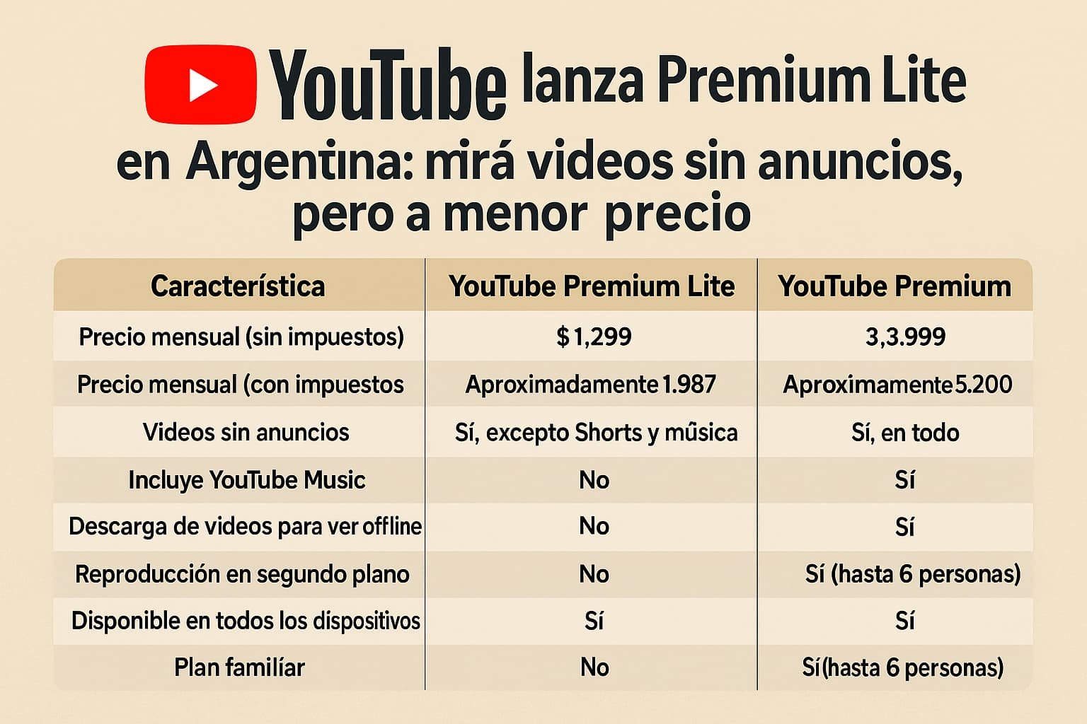 Si sos de los que se cansan de los anuncios en YouTube pero no querés pagar el plan completo de YouTube Premium, ahora hay una opción más accesible: YouTube Premium Lite ya está disponible en Argentina.