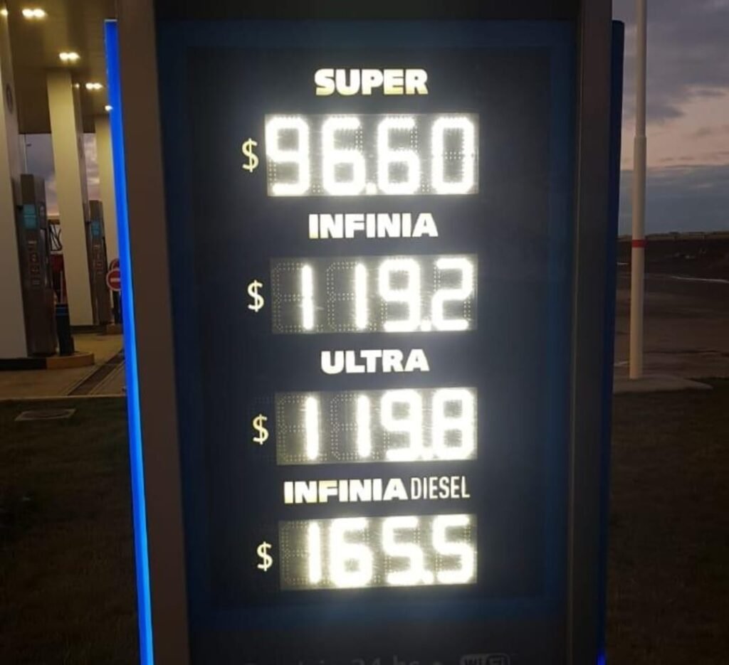Como ocurre de costumbre, en Tolhuin la aplicación del incremento fue automática y las pantallas de la estacion de servicio YPF ya refleja la fuerte suba, que llevó el litro de Diesel Ultra a $119,80 y el segmento premium de Infinia a $165,50.